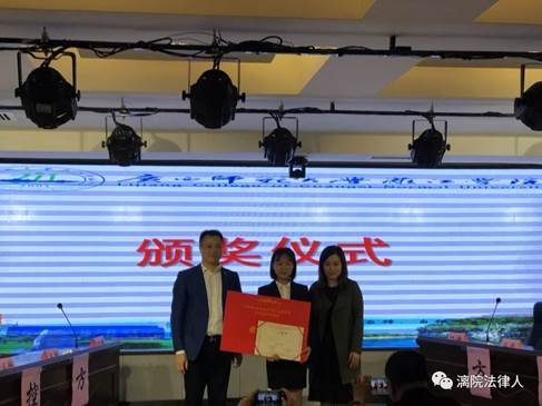 王小兵律师与陈建文老师为获得团队二等奖的队伍颁奖