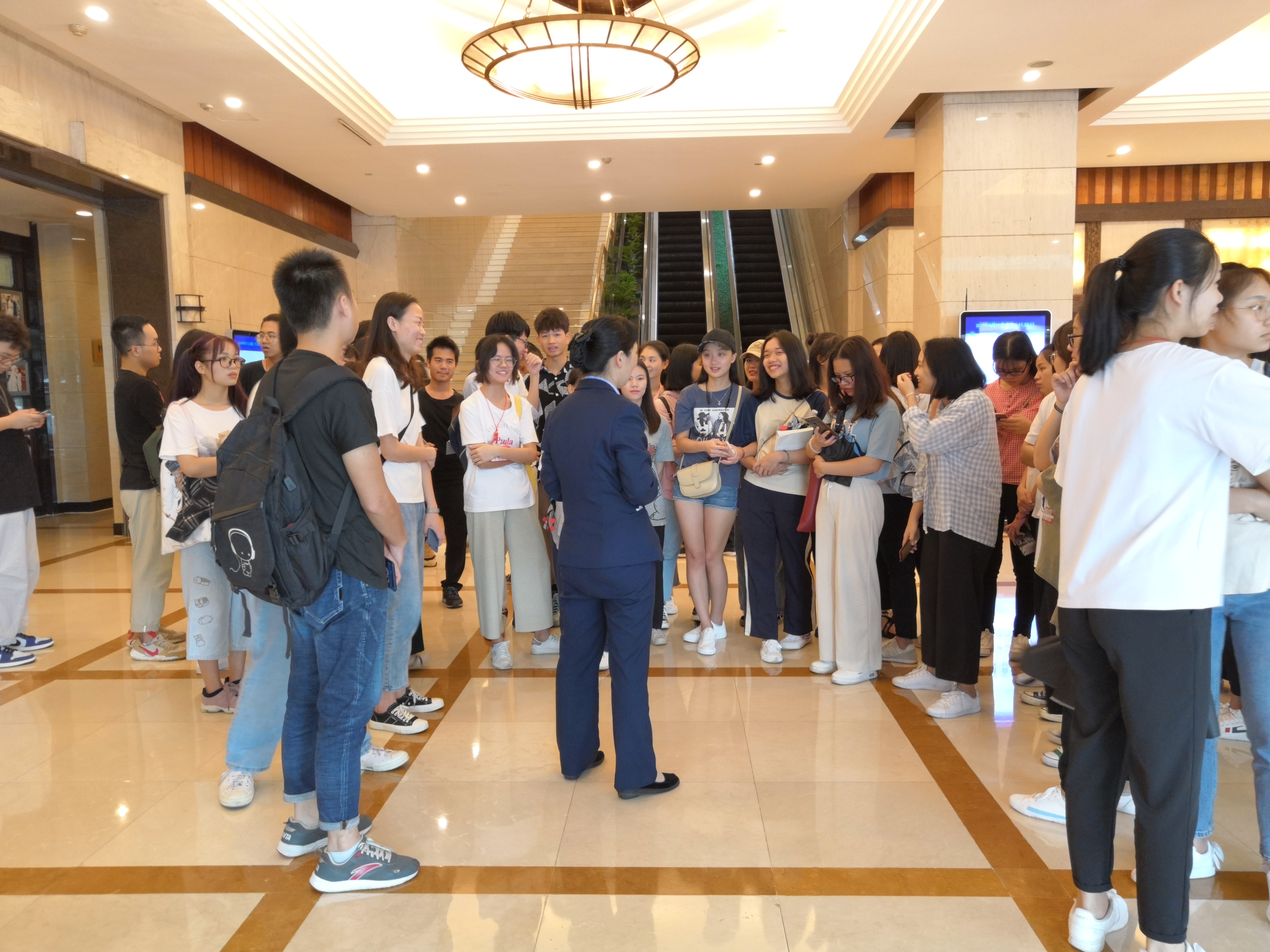 为促进课程的教学,帮助学生更好地理解和应用理论知识,26月11日,2018级旅游酒店管理专业开展实践学习活动。由商贸与法律学院任课教师朱环、辅导员许承婷带领2018级旅游酒店管理全体同学前往桂林漓江瀑布大饭店参观学习。