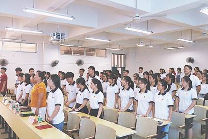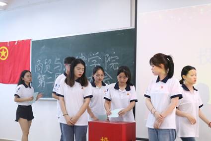 大会在庄严的团歌中拉开帷幕。大会正式开始,在主持人宣读选票的注意事项后,每位候选人依次上台发表个人的竞选感言,他们分别从自身优点、对部门的认知以及对团学的定位与展望等方面做了简短的演讲。演讲结束后,大会严格按照选票规则进行民主、公平的投票,通过统计选票的情况最终选举出新一届的团总支学生会干部。随后学生会主席陈栎丽对上一年度的工作进行了总结,她希望新一届的团学干部能够不忘初心,勇于挑战,通过各个部门的团结合作,把团学越办越好。最后,团总支书记许承婷老师肯定了全体团学成员在本学期的工作中付出的努力和对团学发展作出的贡献。同时,她也指出了工作中所存在的问题,她希望每位团学干部能够在工作中时刻反省自己,能够及时发现问题、提出新见解、获取新的工作方法,同时要敢于担当,做有责任、有抱负的团学干部。