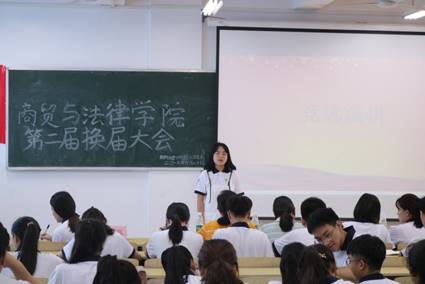 6月20日,商贸与法律学院团总支学生会换届大会在1307教室如期举行。出席本次换届大会的嘉宾有商贸与法律学院团总支书记许承婷、团总支副书记刘雪、第一届团总支学生副书记丁婧赢、学生会主席孟妍和陈栎丽。