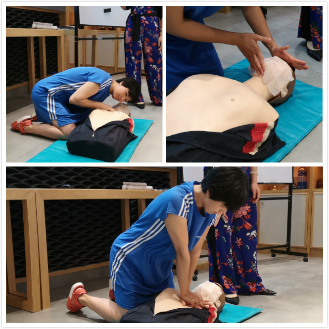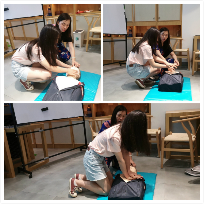刘莹莹老师首先从日常生活中可能遇到的意外事故和突发疾病、如何实施急救、常用急救电话、急救的原则,介绍了生活中常见的急救的相关概念,用通俗易懂的语言和生动形象的事例讲解了在急救过程中的注意事项。在实操环节,潘老师与在座同学进行了互动教学,详细示范了心肺复苏的操作方法。随后,同学们分小组进行现场实操,掌握心肺复苏技能操作技术。