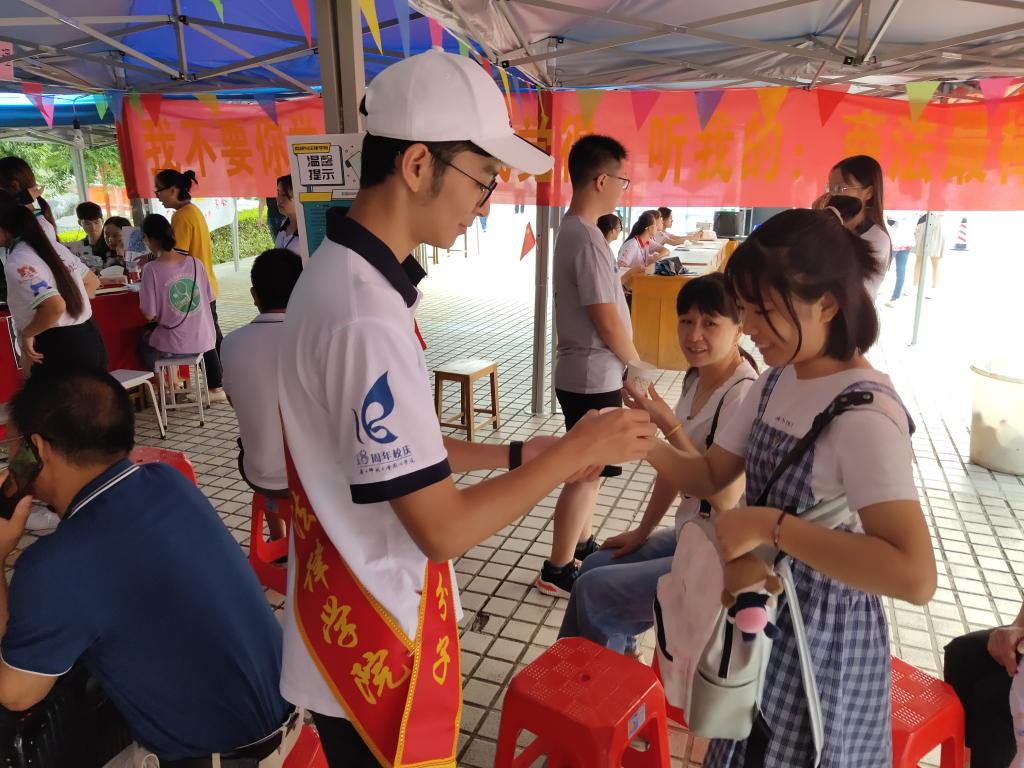 在迎新现场党员们执行“轮班制”严格按照时间安排进行值班,确保志愿服务活动的顺利进行。“有困难,找党员。”这句话充分体现了我院学生党员肩负着的光荣责任:学生党员、积极分子积极为报到的新生们检验录取通知书、分配宿舍、搬运行李等事宜,并耐心地回答新生和家长的问题,及时给予帮助。