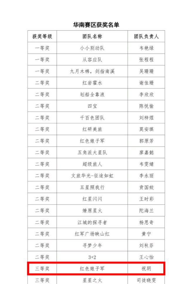 我院2017级旅游管理专业祝玥、白予婕、2017级酒店管理专业韦秋利同学组成的“红色娘子军”团队在韦达、刘莹莹两位老师的指导下荣获第九届全国大学生红色旅游创意策划大赛华南地区三等奖。