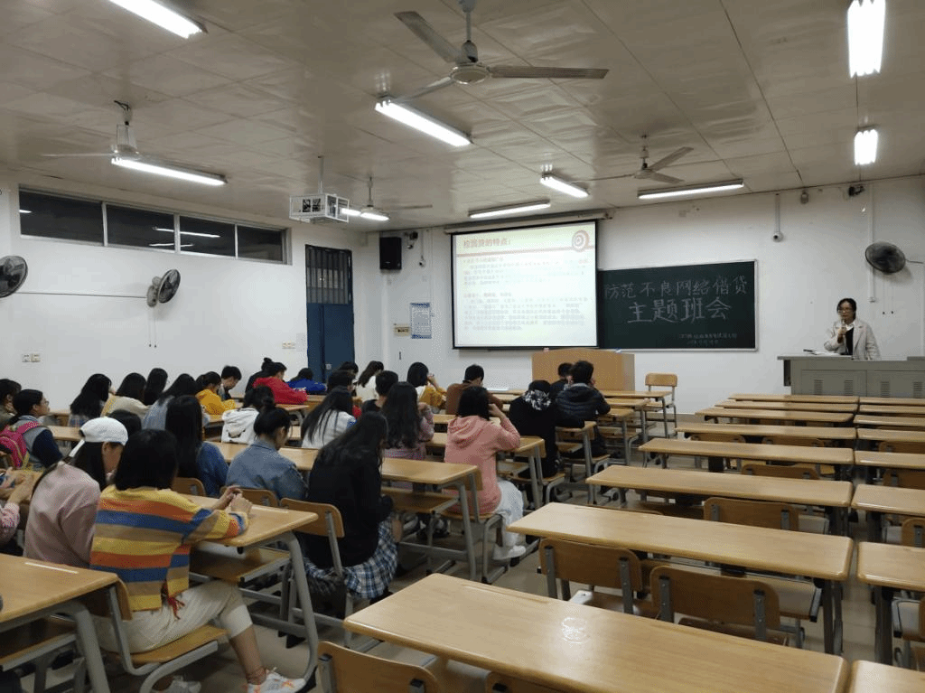 党总支书记陈俊杰、辅导员刘雪、宋丹阳、谭海练、许承婷分别召开《杜绝网络赌博及不良网络借贷》主题班会,商法学院全体在校生参加了班会。辅导员们通过介绍什么是网络赌博、网络赌博的类型、特点、危害、典型案例等方面介绍了网络赌博;通过典型案例、不良借贷的含义和类型、校园贷的特点和风险,如何识别校园贷等方面进行了讲解,并通过互动问答等环节加深了同学们对识别校园贷的小技巧的印象。刘雪老师说到,同学们要树立正确理性的消费观、提高警惕,筑牢安全防线!