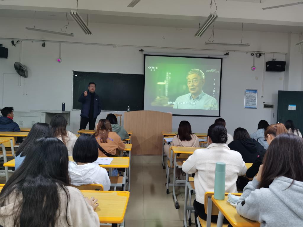 12月15日晚,各团支部召开主题班会,观看了《我们走在大路上》、《教育强国》等专题纪录片。《教育强国》以鲜活的人物、故事化的手法,串联起中国教育扎实前行的足迹,全面讲述了新中国成立70年来,党和政府始终坚持教育优先发展战略,坚持把教育作为重要的民生工程,以建设教育强国、办好人民满意的教育为目标,从学前教育到高等教育等各个领域作出的不懈努力和探索创新。该片反映了新中国教育从总人口80%文盲半文盲的薄弱基础起步,到建设成世界最大的教育规模体系取得的辉煌成就。