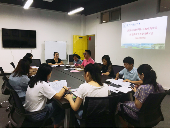 7月7日上午,商贸与法律学院/名淘电商学院在3207实训室召开2020年春季学期期末教学工作会议。学院领导班子林驰、陈俊杰、陈建文、刘雪及全体教职工参加了会议,会议由教学副院长陈建文主持。