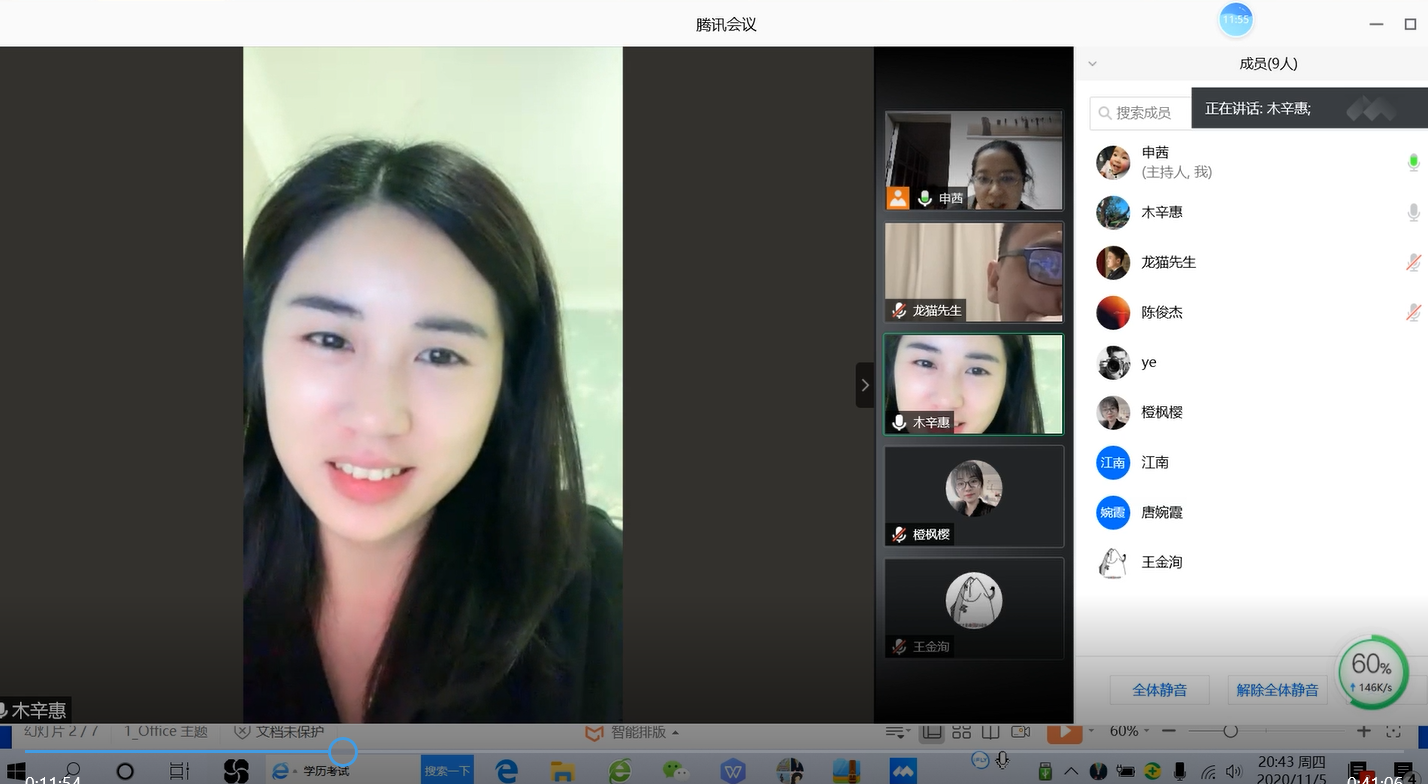 2020年11月5日晚,电子商务教研室通过腾讯会议平台召开外聘教师线上座谈会。会议由教研室主任申茜老师主持,党总支书记陈俊杰,名淘教育企业讲师刘巨强、赵梓涪、程凤英、王金洵、叶文斌、姜楠、唐婉霞参加了本次座谈会。