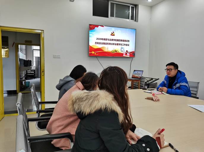 11月27日上午9:30,我院于3203会议室召开2020年第四季度意识形态和安全稳定形势分析会暨学生工作会议。党总支书记陈俊杰、党总支副书记刘雪和全体辅导员出席本次会议。会议由陈俊杰书记主持。