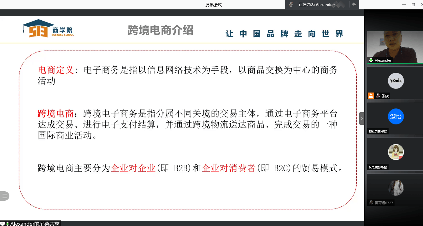 2021年6月3日下午,深圳伍壹叁电商学院暑期实习招聘会在线上举行,伍壹叁电商学院江福星经理携招聘专员进行招聘宣讲,我院2018级国际经济与贸易专业、电子商务专业参加了此次线上宣讲会。