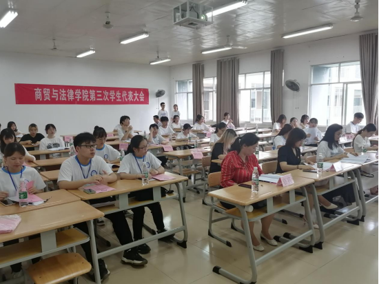 6月27日下午,商贸与法律学院第三次学生代表大会在1408教室隆重召开。商贸与法律学院党总支副书记刘雪、团总支书记许承婷、团总支副书记谭海练、辅导员傅秋月、第三届团总支学生会书记团和主席团成员、各校级组织代表、各二级学院团学代表及商贸与法律学院团总支学生会代表和团支部代表受邀出席。