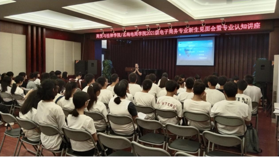 为加强2021级电子商务专业新生对本专业的认识,尽快完成高中生到大学生的学习方式过渡,9月17日18:00,2021级电子商务专业新生见面会暨电商专业认知讲座顺利举行。电子商务教研室申茜、周莹,名淘电商学院教师赵梓涪、王金洵、辅导员许承婷老师、全体电子商务专业在校新生参加了活动。活动由电子商务教研室主任申茜老师主持。