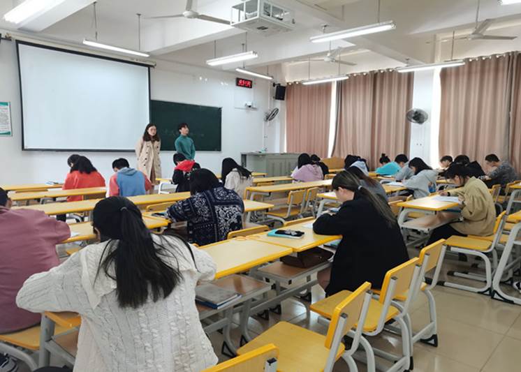图:傅秋月老师到现场监督同学们考试