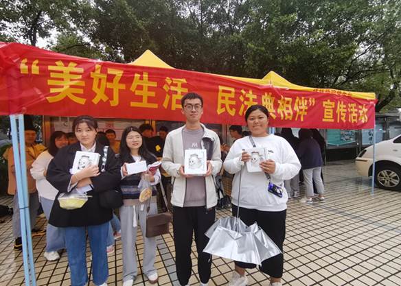 为宣传民法典知识,增加同学们对民法典相关知识的了解,营造和谐法治的良好校园氛围,桂林学院校党委宣传部与商贸与法律学院于10月29日上午在乐善广场共同开展了“美好生活,民法典相伴”之民法典宣传活动。活动主要通过民法典相关知识答题及民法典相关知识解答两个形式进行民法典相关知识宣传。
