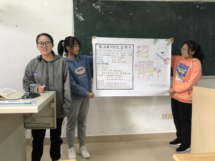 在本次的课程实践中,分别设置了“人员招聘”、“人员选聘”、“人事考评”、“人员培训”四个主题内容。同学们通过查找资料,课程采用任务驱动法、团队协作法,开展公司摸拟招聘、设置岗位说明、结构化面试、绩效评估等环节的角色拟定和角色扮演,根据课本知识点,完成主题任务。人员配备是现代组织进行人才建设的基础,关系到组织的长远发展。随着全球、信息化趋势的不断增强以及国内外市场的日益加剧,人员配备工作在现代组织中占有越来越重要的位置。