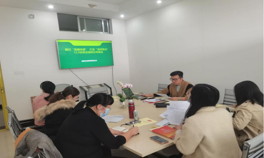 为进一步强化教师党员干部的反腐倡廉意识,深化党风廉政建设,商贸与法律学院教工党支部于12月10日上午在3203会议室组织全体辅导员及党员代表开展举行“12•9”国际反腐败日专题会。会议由学院党总支书记陈俊杰主持。