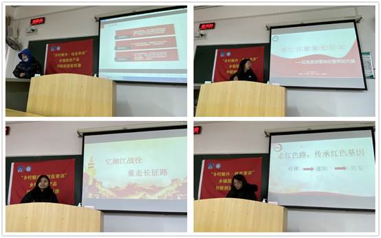 悠悠百年,风华正茂。为庆祝中国共产党建党100周年,深入学习和贯彻落实习近平总书记视察桂林时重要讲话精神和指示,深入推进文化旅游深度融合,弘扬革命精神,传承红色基因,12月28日上午,2018级旅游管理专业学生在2409教室,结合《文化产业经营与管理》课程开展实践活动,围绕桂林市兴安、灌阳、全州、龙胜、资源等红色文化资源进行构思,将其与乡村旅游的食、住、行、游、购、娱、厕、导、智、商、养、学、福、情、奇、文、体、农等市场需求对接,形成红色旅游线路、红色文创旅游产品、红色旅游目的地等创意方案。学生们运用文化产业创意思维,释放创意能量,挖掘、盘活当地特色红色文化旅游资源,以实际行动助推乡村农文旅融合发展,以红色文化旅游助力乡村振兴。