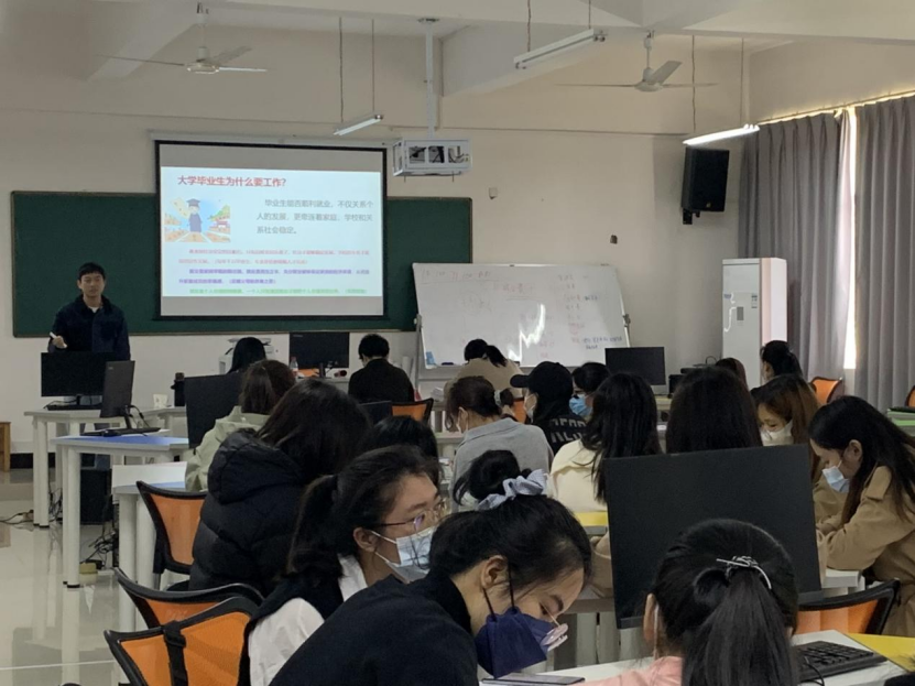 学院副院长陈建文老师为同学们开展了一堂生动的就业指导课程。陈老师从大学毕业生为什么要工作、初入职场应该保持什么心态、适应职场等方面开讲,引导毕业生合理调整预期、理智面对现实,积极主动求职。