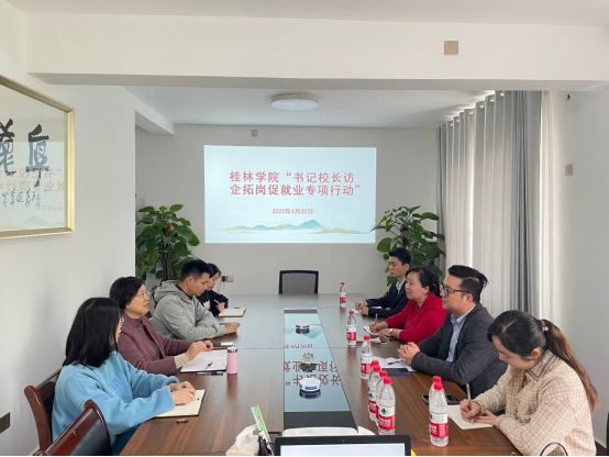 为贯彻落实“稳就业”“保就业”决策部署,带动高校全体教师深度参与做好毕业生就业工作,全面深化校企合作、拓展岗位,努力实现高校对区域用人单位供需对接全覆盖,全力促进高校毕业生更加充分更高质量就业,4月20日,在我院党总支书记陈俊杰及党总支副书记刘雪的带领下,我院一行5人赴桂林大地公关会展有限公司(以下简称“大地公关会展”)开展走访调研。桂林大地公关会展有限公司总经理朱芳琼、项目管理中心总监解文吉及我院会展经济与管理专业19级实习生王洁、冼金兰同学出席会议。