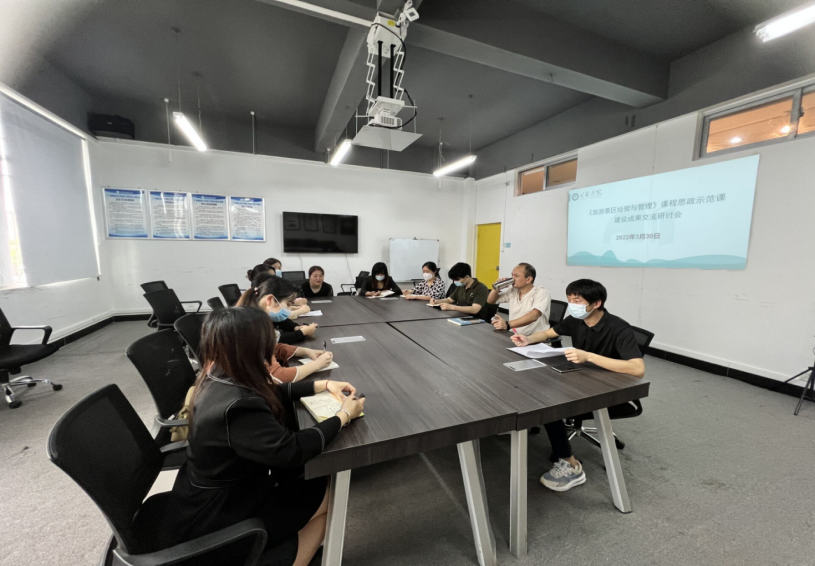 研讨会梳理总结了旅游教研室开展课程思政建设以来的建设路线和经验,并课程思政建设工作中的关键问题进行了交流和探讨;会议要求教研室全体教师按照课程思政建设实施方案,依托专业课程,打造课程思政建设亮点,引导学生将课程思政融入全国大学生红色旅游创意策划大赛、互联网+青年红色筑梦之旅、挑战杯等项目;会议要求全体教师要积极参加学校“课程思政”微课设计比赛“、课程思政”教学大赛和自治区级课程思政示范课程申报。会议还共同学习了《酒店管理概论》《会展概论》申报学校第三批校级课程思政示范课程的材料,并提出完善建议。