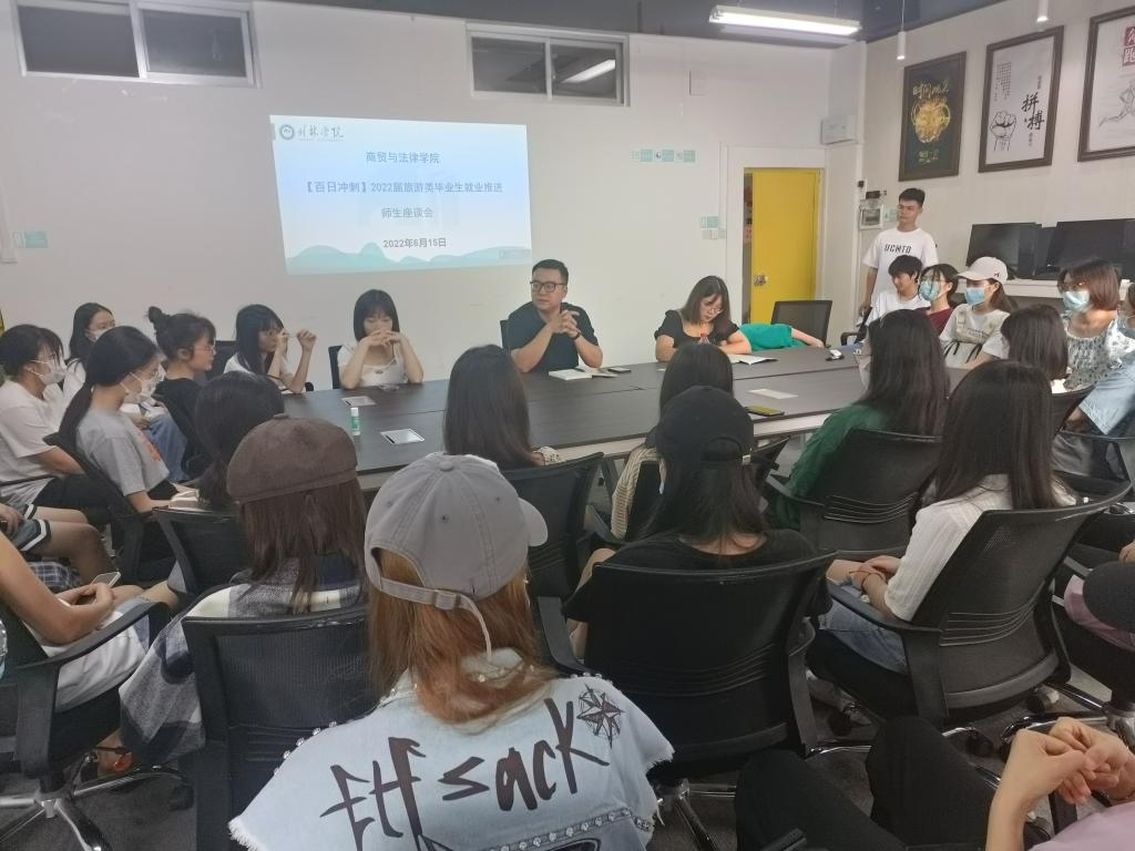 为增强学院旅游类各专业就业推进工作效果,提升和毕业生就业意识以及职业规划质量,6月15日上午,商贸与法律学院召开旅游类毕业生就业推进师生座谈会。学院党总支书记陈俊杰、旅游管理、会展经济与管理和酒店管理三个专业近40余位毕业生参与活动,毕业班辅导员许承婷主持会议。