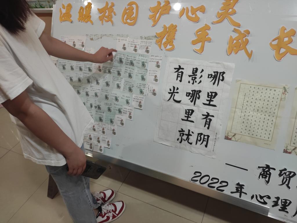 为加强心理健康宣传教育,增强温暖和谐的校园文化氛围,我院于六月中旬组织开展“心牵你我,健康同行”创意主题展板宣传活动,号召13个团支部以构建和谐人际关系、情绪调节、学会学习、珍爱生命等内容,认真撰写书法作品,将疫情期间学习生活的心态感受写在便利贴上。经过整体挑选,共选出2幅毛笔书法作品、21幅硬币书法作品及600余张写满字样的便利贴。本次活动有益于大学生形成身心健康、人格健全的心理素质,促进学校形成有利于形成学生积极心理健康的校园氛围。