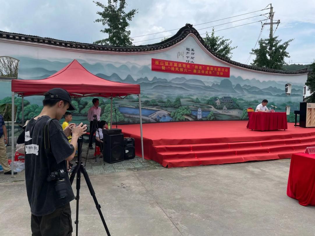 2022年6月雁山镇在良丰下村举办送理论“四进”基层主题活动暨“清风拂六一 廉洁伴成长”活动。雁山区人大常委会副主任唐振国、镇全体班子领导、站所长、各村支书等出席活动。商贸与法律学院党总支参与此次活动并协助参与现场拍摄工作。