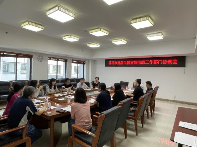 6月24日,在秀峰区政府1309会议室召开了桂林市首届乡村振兴·巾帼直播电商工作方案讨论会,参与本次讨论会有桂林市妇女联合会姜睿、欧云建、桂林市人力资源和社会保障局黄有富科长、桂林市商务局罗辉科长、桂林市乡村振兴局副科长郭冬梅、桂林市电子商务协会余俊会长、桂林市广霖职业培训学校校长朱燕萍、桂林中灿传媒有限公司总经理蒋树人、桂林市万和农产品有限公司副书记刘萌刚、桂林桂路通奇瑞汽车经销公司代表杨晓娟,名淘电商学院电子商务教师申茜、周莹也受邀参与此次会议。