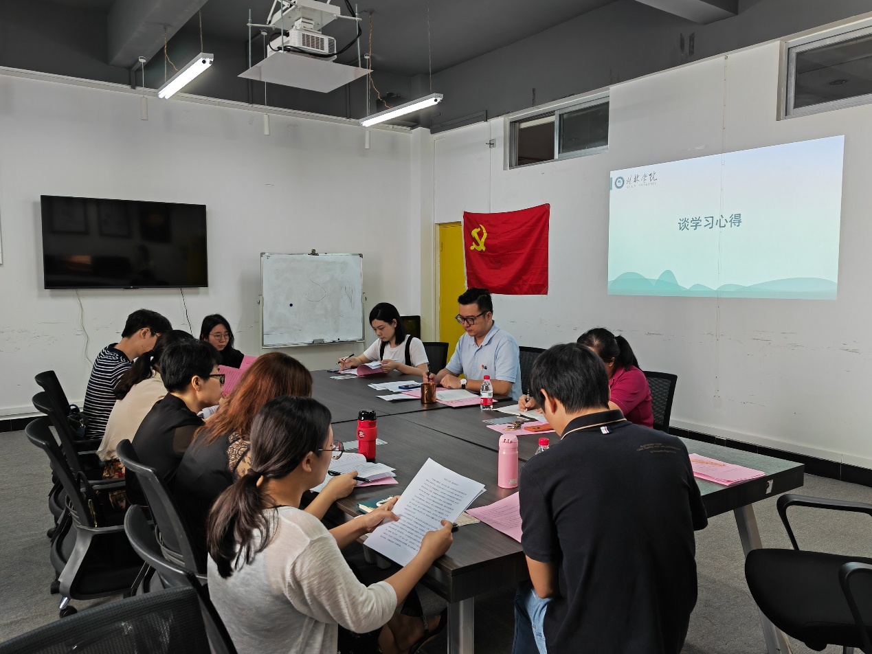 随后,部分教师党员就相关学习心得做了主题发言。学院团总支副书记余晓丽讲到,今后的团学工作中,要把学习宣传贯彻习近平总书记重要讲话精神作为当前和今后一个时期的首要政治任务,引领广大青年学生在学深悟透上下功夫,在宣传宣讲上走在前,在贯彻落实上做表率。切实把习近平总书记重要讲话精神贯彻落实到团学工作全过程各领域。归国教师代表刘雨婷讲到,作为一名在海外学习的高校教师,深刻意识到自身所承担的报效祖国、服务人民的责任。未来将以自身所学知识教育引导学生树立家国情怀,为加速学校发展建设,服务地方经济发展作出自己的贡献。