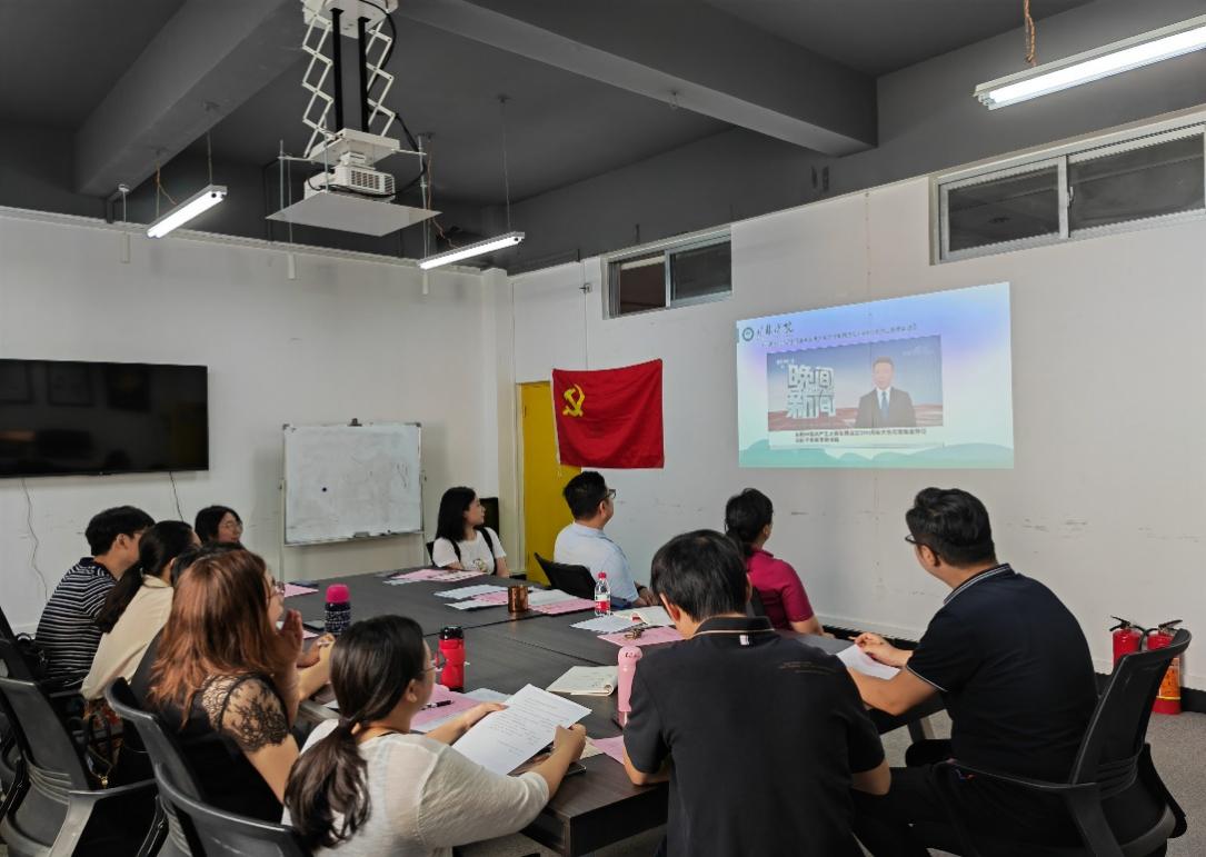 在场人员还一起学习了《习近平总书记在庆祝中国共产主义青年团成立100周年大会上的重要讲话》《给北京科技大学老教授的回信》《给南京大学留学归国青年学者的回信精神》的相关视频。
