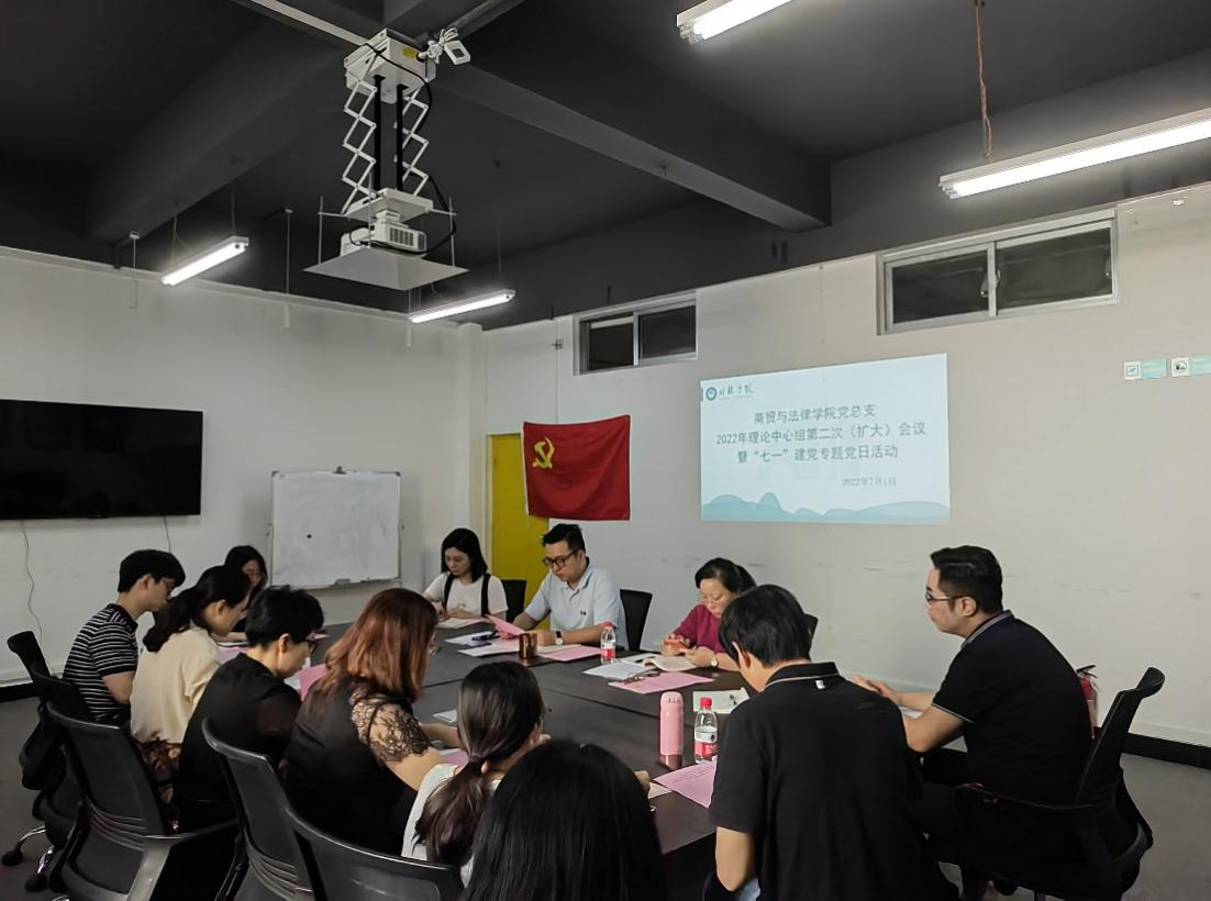 7月1日上午,商贸与法律学院在3207会议室召开2022年理论中心组(扩大)第二次会议,会议由党总支书记陈俊杰主持,全体党总支委员、学院行政领导班子成员、全院教师党员、学生党员代表参加了会议。