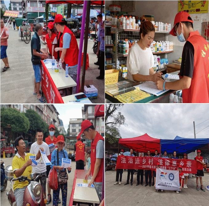 为深入学习贯彻习近平总书记全面依法治国新理念新思想新战略,推动基层法治建设,响应国家建设社会主义法治文化,商贸与法律学院“小红帽”普法小分队实践团于7月1日至2日赴新民小学和临桂区会仙商贸城市场开展“普法宣传进乡村,法律意识入人心”为主题的暑期“三下乡”社会实践活动。