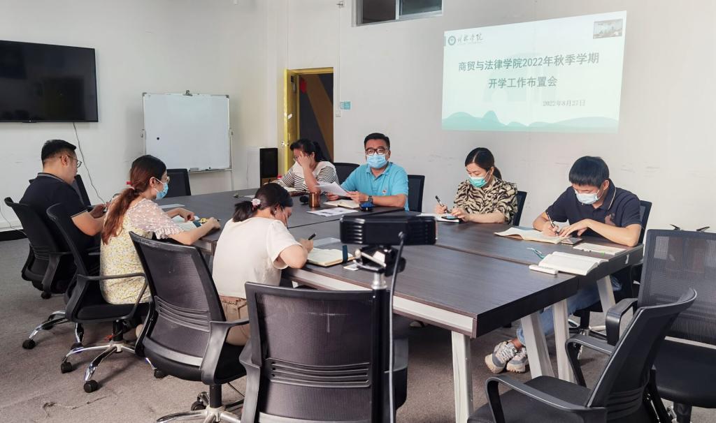 8月27日上午10:30,商贸与法律学院/名淘电商学院在3207教室召开了2022年秋季学期开学工作布置会,会议由党总支书记陈俊杰主持,采用线上、线下相结合的方式进行。