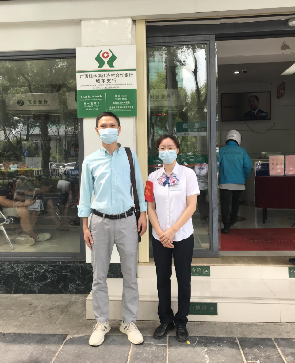 蒋淑琳同学从事的是大堂副理的工作,负责指引客户办理各种业务,协助大堂经理给客户填写好相关单据并打印单据。因为要服务形形色色的客户,需要较强的语言表达能力和随机应变能力。从企业导师和同事的反馈来看,蒋同学诚实乐观、积极肯干,深受客户和同事好评。