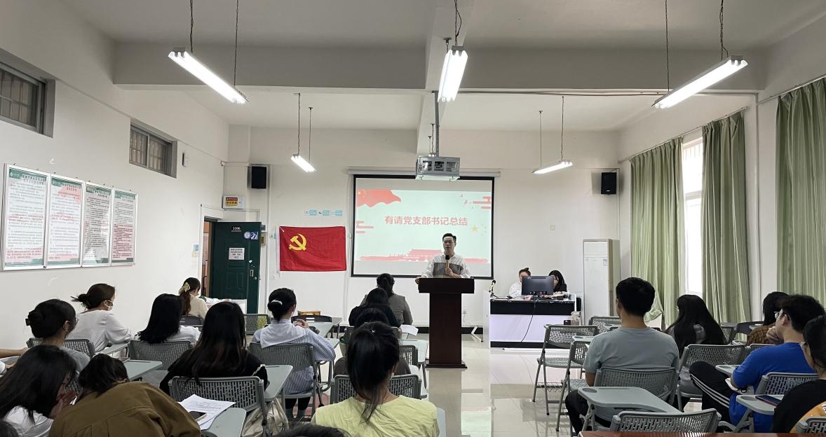 最后,学生党支部书记宋丹阳进行会议最后的总结。他认为要学习校训,发扬“至善精神”发挥学生党员的带头模范作用。积极学习二十大会议精神内容,作为一名党员,我们要认真贯彻党的二十大会议精神,始终坚持党的领导,对党忠诚,紧紧围绕党的中心任务,踔厉奋发、勇毅前行,争做优秀学生党员。