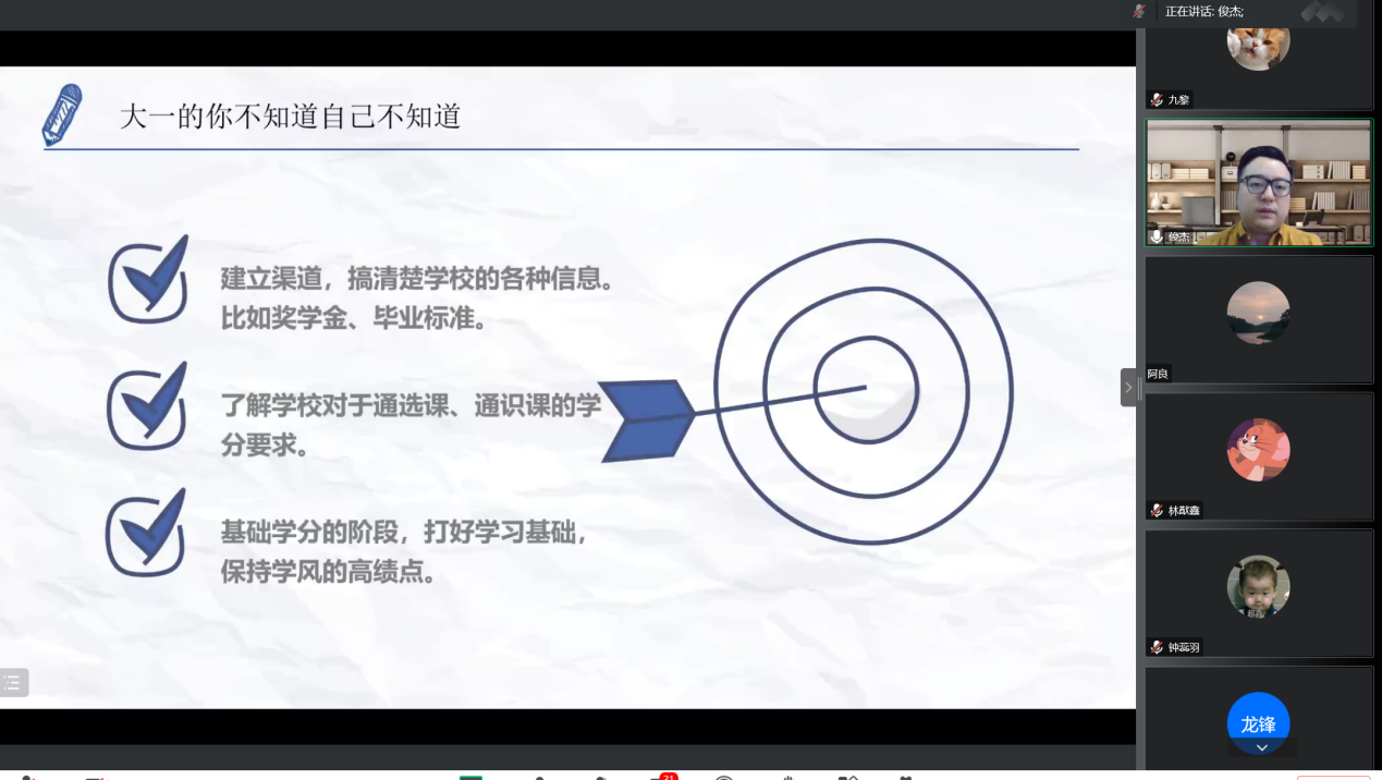 讲座开始,陈俊杰老师耐心为新生解疑答惑;随后围绕“读大学,读什么?”“上大学的正确'姿势'”以及“大学学业及职业规划的tips”三大主题开始本次的主题讲座。陈俊杰老师为同学们仔细讲解了“至善”文化的由来,由此引出商贸与法律学院的内在精神,激励同学们努力学习,争先创新。随后逐一介绍了同学们在大学中每一个阶段应该做的事以及可能在大学中遇到的困惑并针对性地提出解决方法。