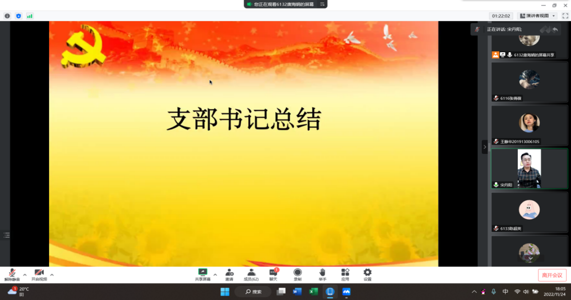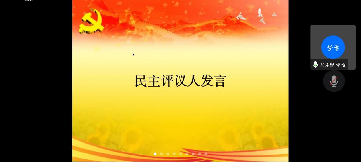 为进一步夯实我院党建工作,加强党员队伍建设,落实党支部发展党员工作计划,商贸与法律学院学生党支部于11月24日下午在腾讯会议开展了2022年下半年发展党员大会。会议由唐海娟同志主持,并邀请了商贸与法律学院党总支副书记刘雪、学生党支部书记宋丹阳、辅导员傅秋月以及学生党支部全体党员、预备党员同志参加会议。