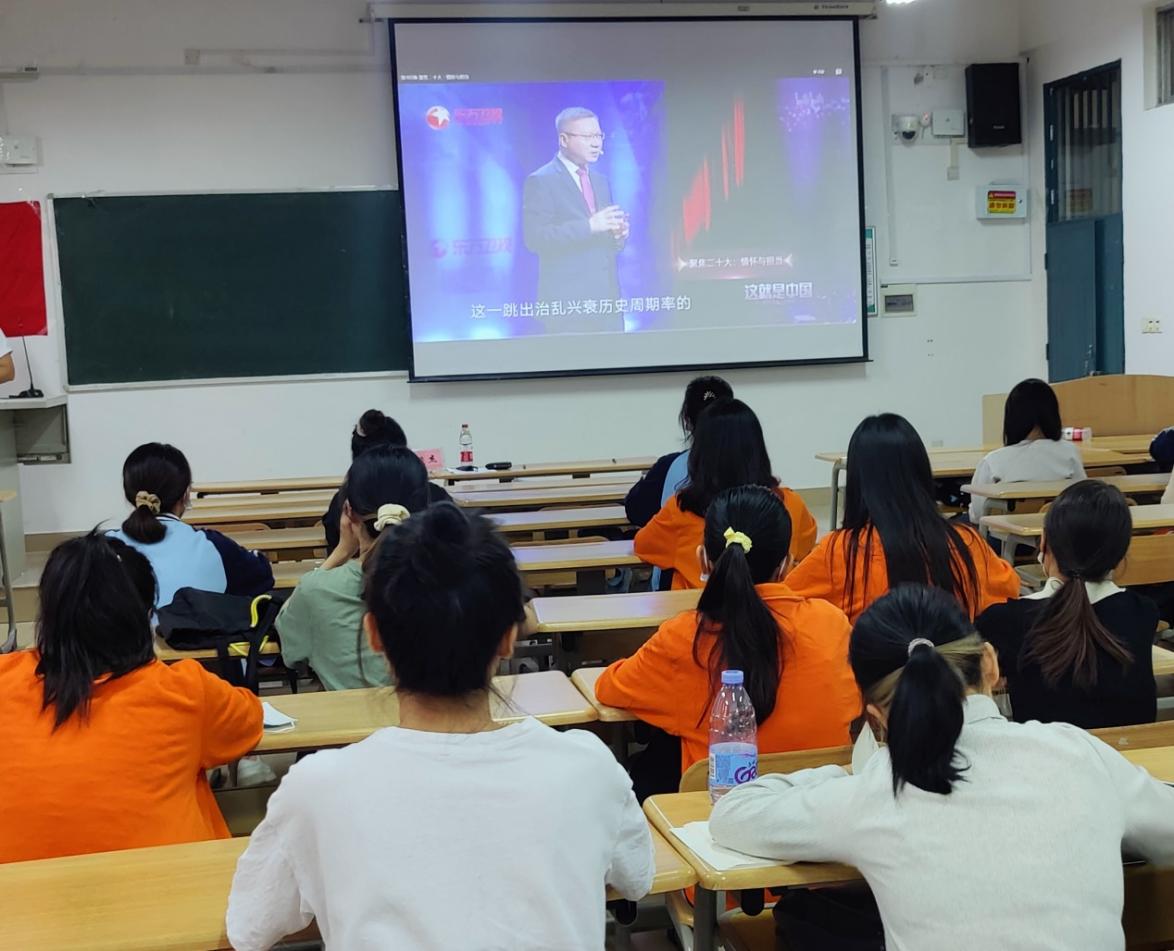 同学们认真观看《聚焦二十大:情怀与担当》视频