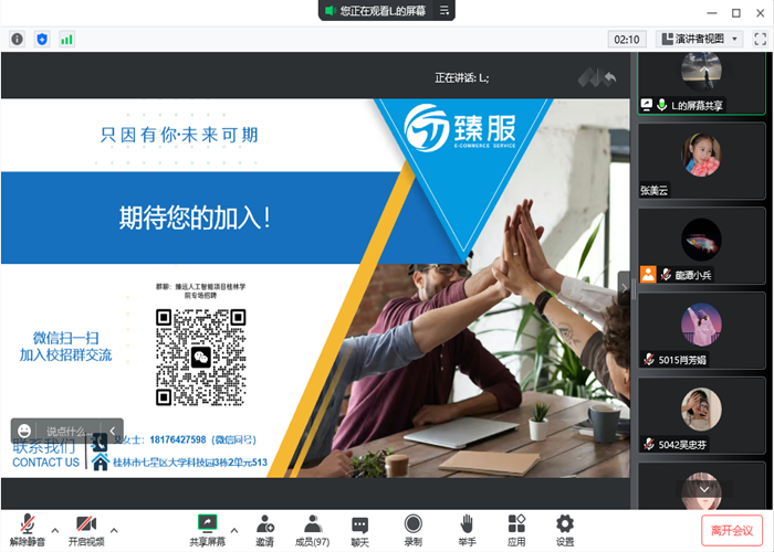 为促进我院毕业生的就业积极性,拓宽就业渠道,4月7日上午,金融与法律学院开展线上就业招聘宣讲会,我院党总支副书记刘雪。毕业班辅导员以及2019级全体毕业生参加了此次宣讲会。宣讲会由杭州臻服网络科技有限公司钟丽红总经理主讲。