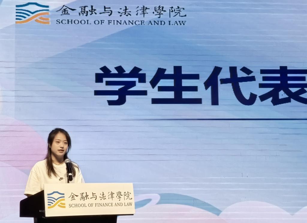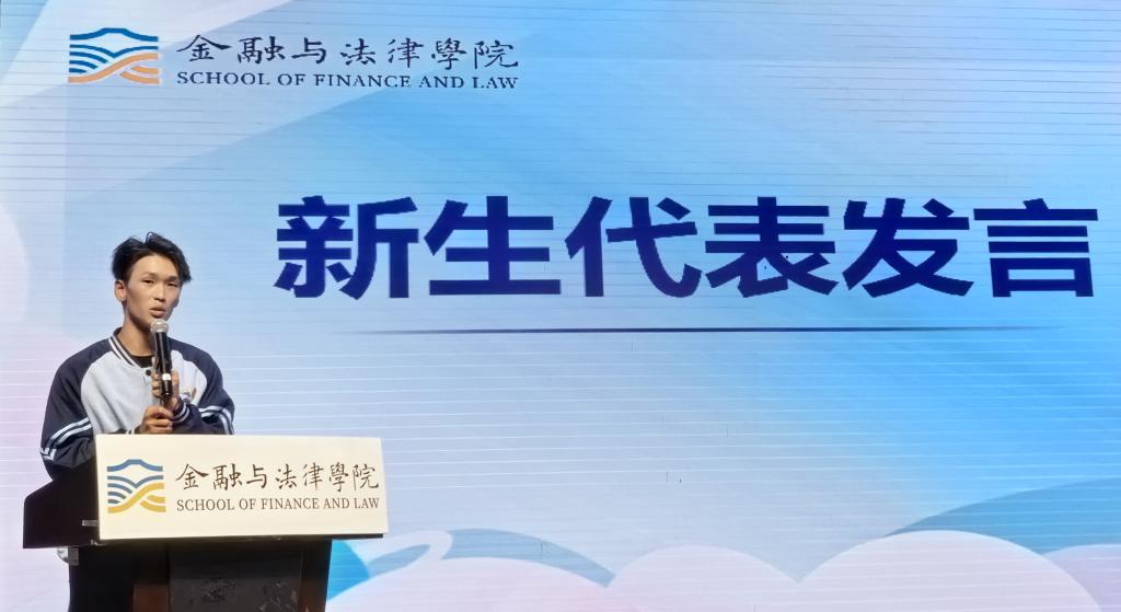 “学习是取得成功的基础,实践是取得成功的源泉。奋斗是取得成功的关键。”金融学类专业付观文作为新生代表发言,他分享了出来桂院的感受和经历,期待与同学们不负韶华,砥砺前行,在追求卓越的道路上奋斗不息。