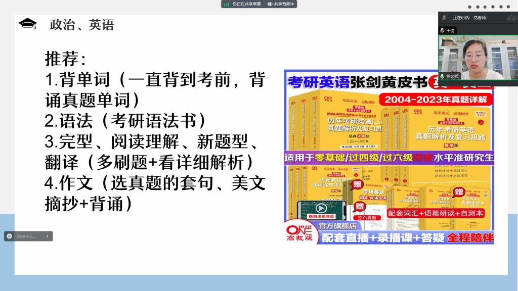 首先,党老师结合自身的考研初衷与备考经历,给同学们分享了考研的心得和体会,并指出考研学子最重要的一点是需要稳住心态,不断努力,同时建议同学们多听新东方教育机构老师的考研英语课程,鼓励同学们保持高昂的学习兴趣,找到适合自己的学习方法;接下来,赵曦教师结合考研升学与就业发展,为同学们提供了许多可行性建议,向同学们分享了如何选择考研院校、如何选择研究方向、如何高效备考,以及如何获取资料、真题和如何选择导师等考研经验,最后,还向同学们推荐了考研相应科目老师的书籍。