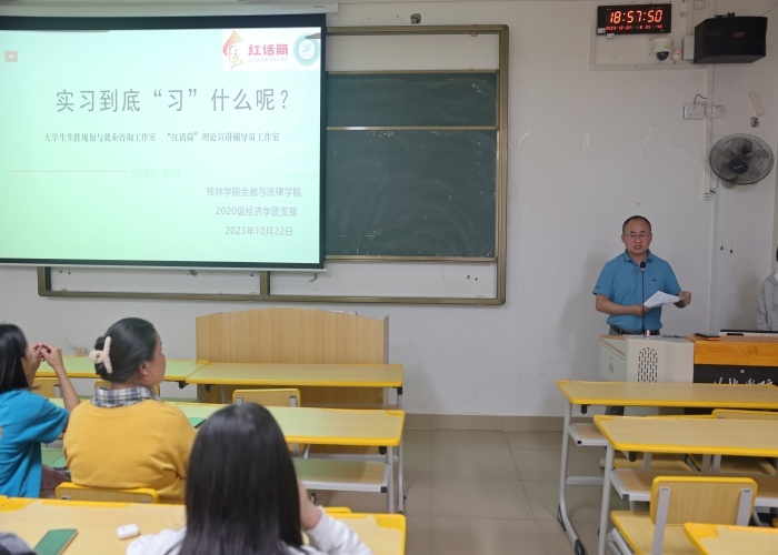 为进一步了解团支部成员专业实习期间所遇到的问题及实习感受,解决实习工作中所遇到的实际问题,10月22日晚,金融与法律学院2020级经济学团支部全体成员在1415教室召开实习到底“习”什么的经验总结分享会。本次活动由金融与法律学院杉湖家苑“一站式”学生社区党支部书记、团总支副书记、思想政治专业辅导员党延伟老师主讲。