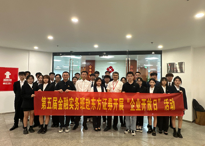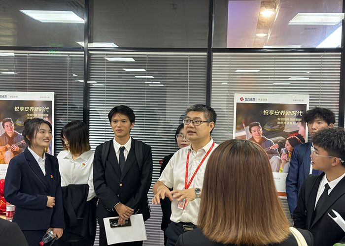 为了进一步提高实务班行业认知能力,并充分发挥校企协同育人优势,11月1日下午,金融与法律学院党总支书记陈俊杰一行带领第五届金融实务班的24名同学赴东方证券桂林中山中路证券营业部开展“企业开放日”活动。营业部党支部书记刘娟娟、副书记黄瀚萱、东方证券桂林党支部党员代表们热烈欢迎学院领导与师生的到来。