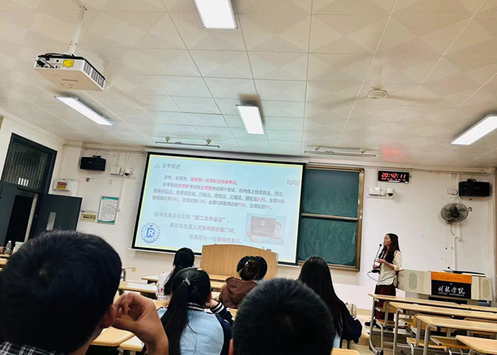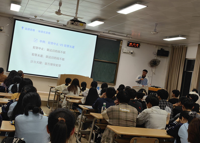 王潇老师向同学们讲述了标准化思维、立体化思维等法律思维,运用案例分析的方法帮助同学们初步了解法学学习的思维模式,帮助有考研意向的同学进行了法硕和学硕区分。随后,王潇老师详细介绍了法考具体的科目设置以及困难程度,就历年分数线、分值分布、通过率等向同学们分析了备考策略,帮助同学们更好的进行备考规划,为同学们正确备考指明方向。