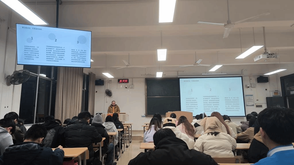 在考研最后的冲刺阶段,为进一步提高考研学子的热情,掌握相关的考研技巧,12月3日晚,金融与法律学院2020级金融学投资学经济学三个班级的团支部集聚在1315教室,开展考研经验分享班会,本次班会由金融与法律学院学生社区党支部书记,团总支副书记,思想政治辅导员党延伟老师主持。班会的主题是“留个微笑给自己,把压力化作为力量的源泉”。希望考研学子在学习上遇到困难不放弃,给自己打气,坚持下去,直到成功。班会进行分为三个部分“要强身健体,不要透支身体”,“要注重方式,不要漫无目标”,“要持之以恒,不要半途而废”。辅导员老师分别强调了,学习之中要注意身体素质的锻炼,拥有强壮的身体,去迎接挑战。选择合适的方式备考,达到“事半功倍”的效果,运用感官记忆,加强记忆。备考之时,可以说我好累,但是不能说我不行,不到最后一步,永远不要轻言放弃,持之以恒是我们的本色。考研之路的辛苦,不言而喻。希望考研的同学,首先要选择好目标,其次坚持不懈,最后拥有良好的心态。不辜负沿途的风光,攀登心目中的顶峰。