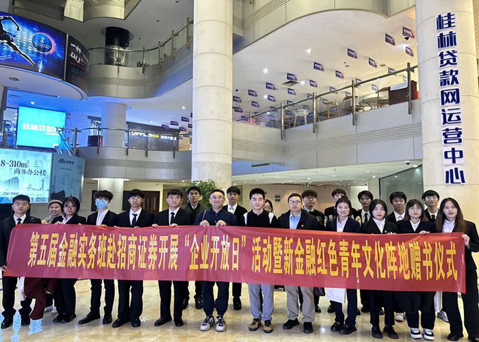 12月14日,金融与法律学院金融学教师胡乐天和韦翔带领第五届金融实务班的24名学生赴招商证券桂林营业部开展“企业开放日”活动。此次活动不仅让学生们深入了解了招商证券的企业文化和运营模式,还为学生们提供了一个与业界专家面对面交流的机会。