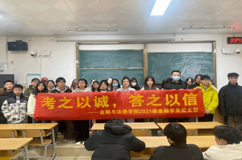 为进一步加强学生诚信教育,教育学生严格遵守考风考纪,在期末考试来临之际,12月28日,金融与法律学院开展“考之以诚,答之以信”诚信考试主题教育活动,金融与法律学院学生社区党支部书记、团总支副书记、2021级金融学类专业辅导员党延伟老师及2021级金融学、投资学、保险学全体学生参加本次活动。