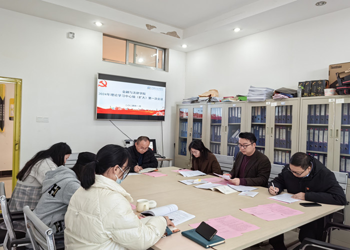 1月16日,金融与法律学院党总支在学院党建活动室召开理论学习中心组(扩大)第一次会议,全体党总支委员、团总支书记、学生党支部书记及全体专职辅导员参加会议。会议由学院党总支书记陈俊杰主持。