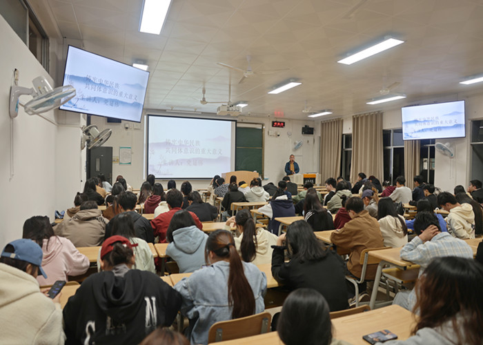 班会上,姚荣副书记向同学们详细介绍了铸牢中华民族共同体意识的重大意义、铸牢中华民族共同体意识的丰富内涵和铸牢中华民族共同体意识的实践途径;党延伟老师带领同学们集体学习习近平总书记在广西考察时的重要讲话,结合自身实际经历,深入浅出讲解中华民族共同体概念的提出与发展、铸牢中华民族共同体意识的重大意义,深刻阐述增强“五个认同”的重要意义;余晓丽老师从广西三月三深厚的文化底蕴切入,引出“民族”“中华民族”等基本概念,重点围绕铸牢中华民族共同体意识理论脉络、铸牢中华民族共同体意识的基本要求和中华民族多元一体格局三个方面进行了讲解;谭海练老师则从自成一体的地理空间、“大一统”的政治文化传统、相互依赖的经济生活、互相吸纳的人口联系和互鉴融通的中华文化五个方面介绍中华民族共同体意识的形成与铸牢。