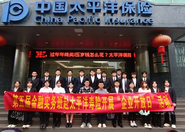 为了深化金融实务班学生对保险行业的认知,提升实践能力,4月22日下午,由梁志民、李勇斌两位老师带队,我院第五届金融实务班学生24名同学赴太平洋寿险公司桂林中心支公司开展“企业开放日”活动。