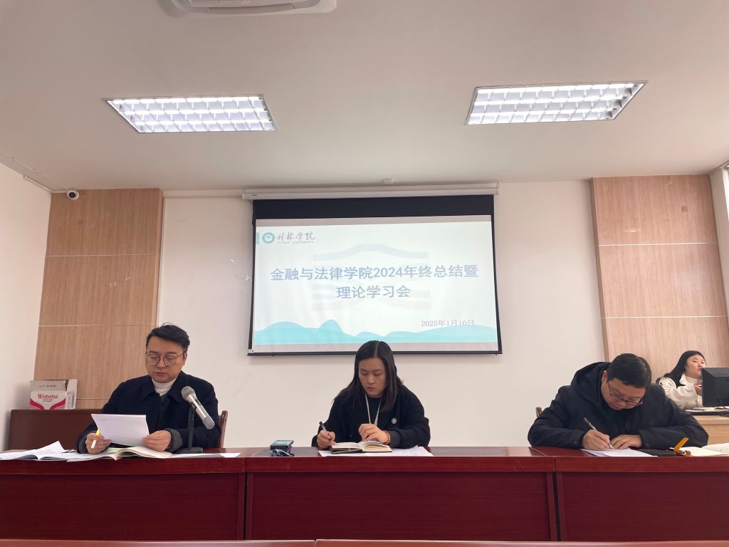 1月10日上午,金融与法律学院在图书馆C馆三楼报告厅成功举办了2024年终总结暨理论学习会。学院领导班子及全体教职工悉数出席,共同回顾过去一年的成就与挑战,规划未来的发展蓝图。会议由学院党总支书记主持。